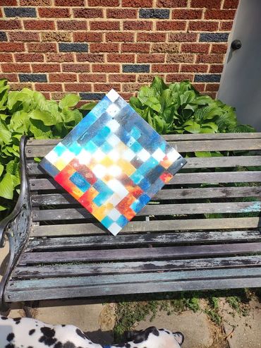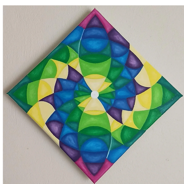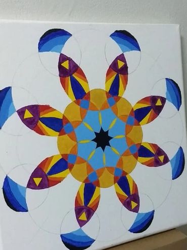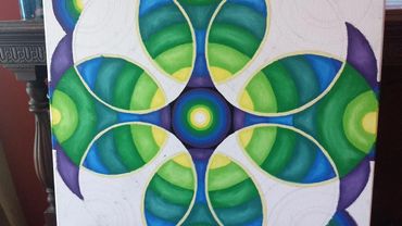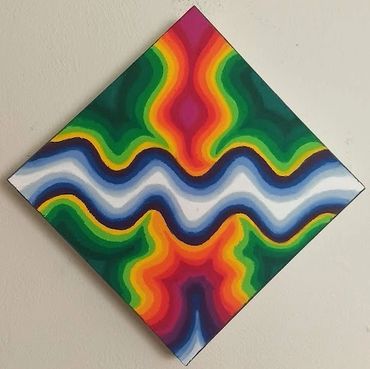 One of my favorites from 2024, this painting is a geometrically inspired orb of light and heat, that captures the viewers' gaze from anywhere in the room.